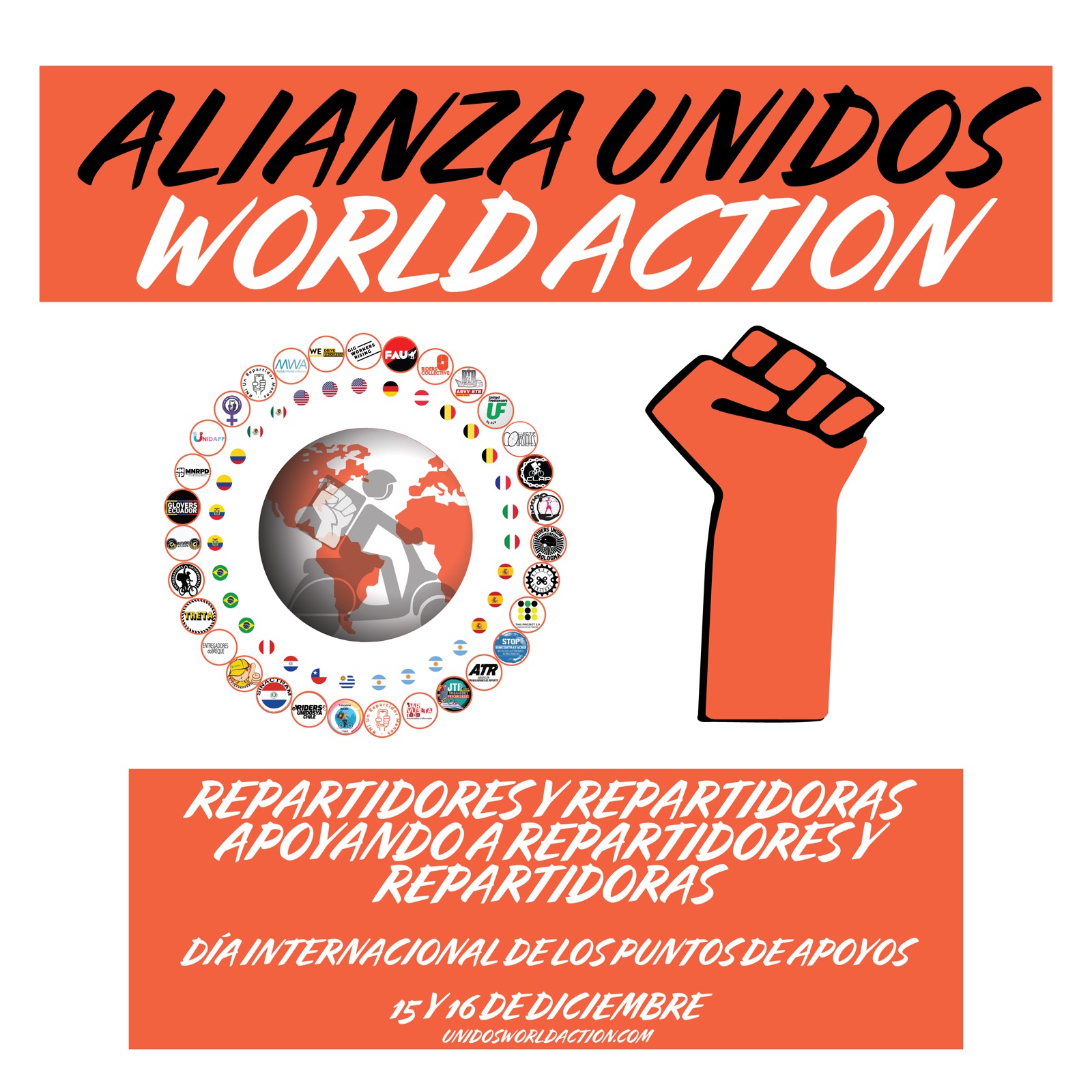 Desde la Alianza Unidos World Action exigimos a las empresas de reparto por aplicación y de conductores y/o gobiernos que pongan en pie en todas las ciudades del mundo en que desarrollamos nuestras tareas los Puntos de Apoyo. Es su responsabilidad brindarnos estos espacios básicos, que tienen que ver con el cumplimiento de derechos mínimos para cualquier trabajador o trabajadora en su ámbito laboral.