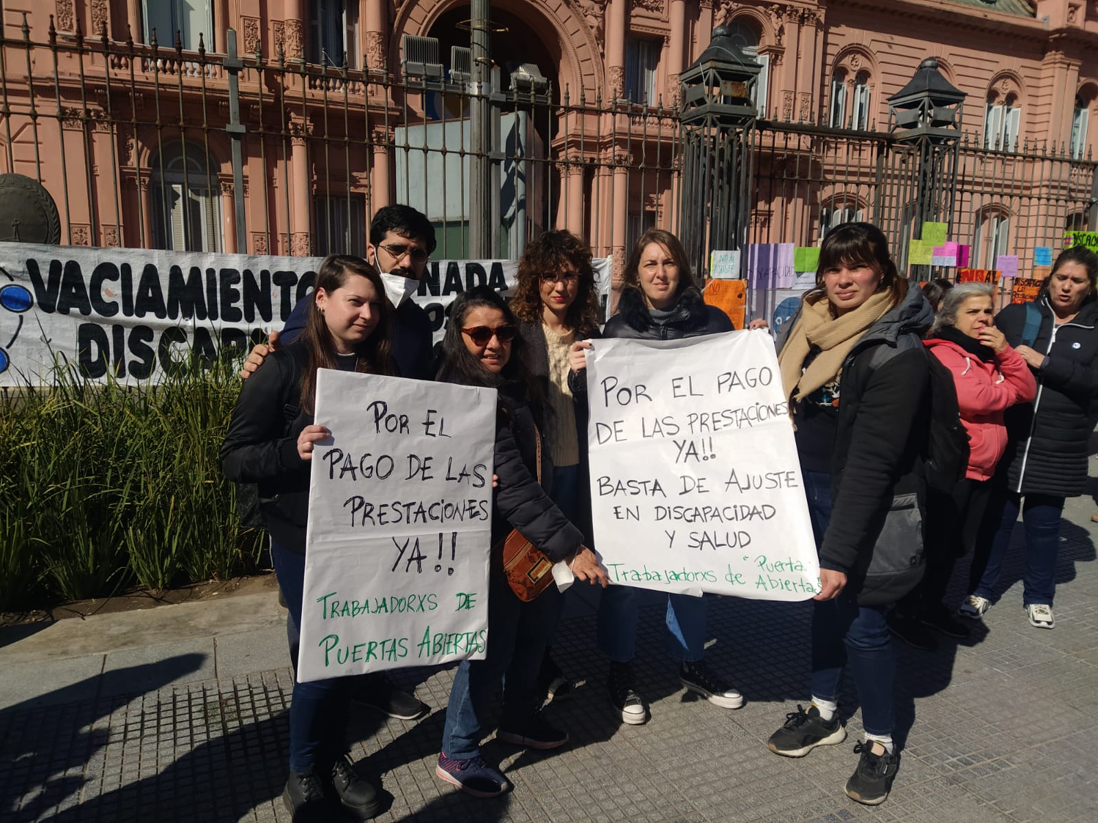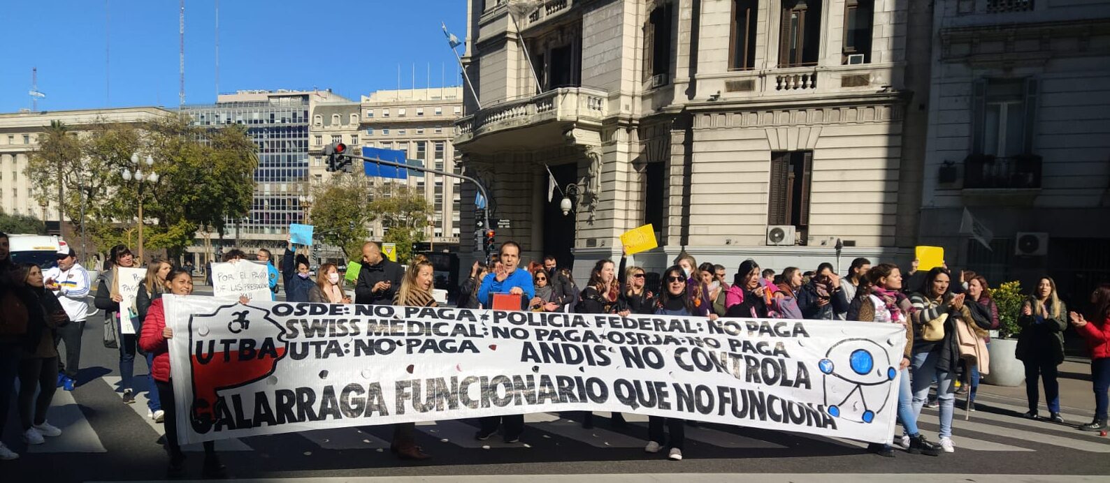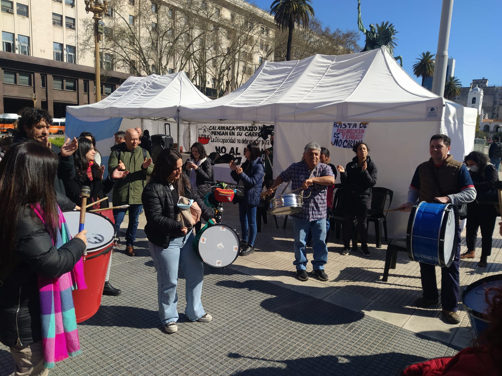 Este lunes desde temprano se inició una jornada de lucha protagonizada por trabajadorxs de atención en discapacidad, en reclamo por el atraso en los pagos de las prestaciones. Comenzaron movilizándose desde Carlos Calvo y 9 de Julio, marchando por Diagonal Sur hasta llegar a Plaza de Mayo, donde instalaron una carpa blanca que se mantendrá durante tres días en protesta por el ajuste en discapacidad.