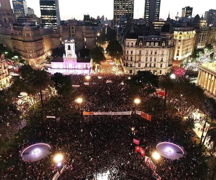 Pero lo de la burocracia no fue la única amenaza a la realización del acto. A las 12 del mediodía había llegado el camión para armar el escenario en la Plaza de Mayo. La policía quiso impedir que se armara el escenario, aduciendo que no había un papel de permiso del gobierno de la Ciudad. Las compañeras que estaban allí de la organización se plantaron y además apelaron por los grupos de Whatsapp al movimiento. En un rato había 100 compañeras haciendo un cordón para que la policía no bajara el camión de la plaza. A medida que pasaban las horas y era claro que la movilización era enorme, el gobierno de Larreta tuvo que ceder el famoso “permiso”. Y así el escenario se comenzó a armar recién a las 16.20 de la tarde.