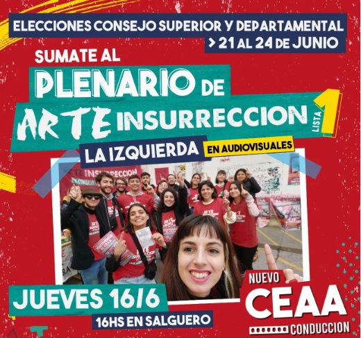 Ahora, vamos a estas elecciones para llevar toda la fuerza del Nuevo CEAA a los Consejos y pelear por el presupuesto urgente para la educación pública, el arte y la cultura independientes. Vamos por un voto masivo a la Lista 1 de ArteInsurrección para fortalecer la voz de les estudiantes!